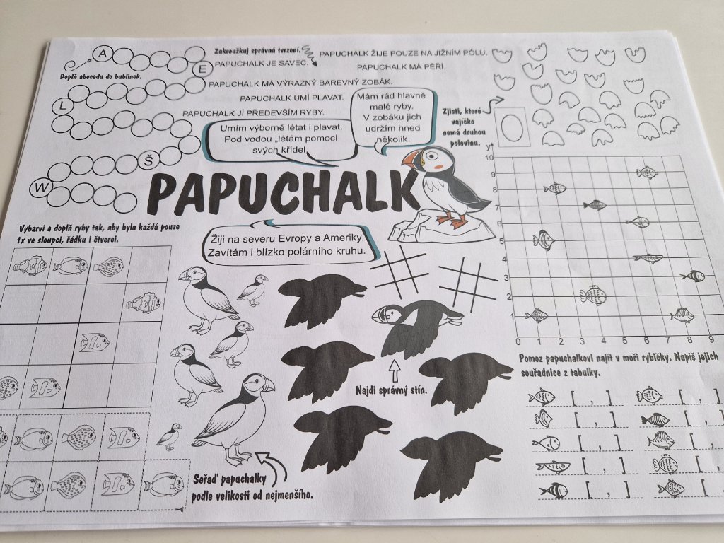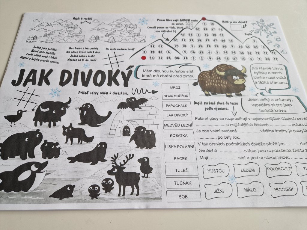 Materiál je vhodný pro práci ve škole i doma. Děti se seznámí se zvířaty, jako je sněžná sova, lední medvěd, tučňák, mrož, tuleň, polární liška a další.